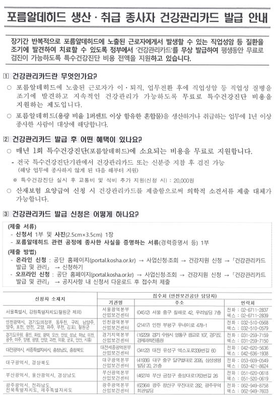 - 안전보건공단 고객만족센터 1644-4544(평일 09:00~18:00)