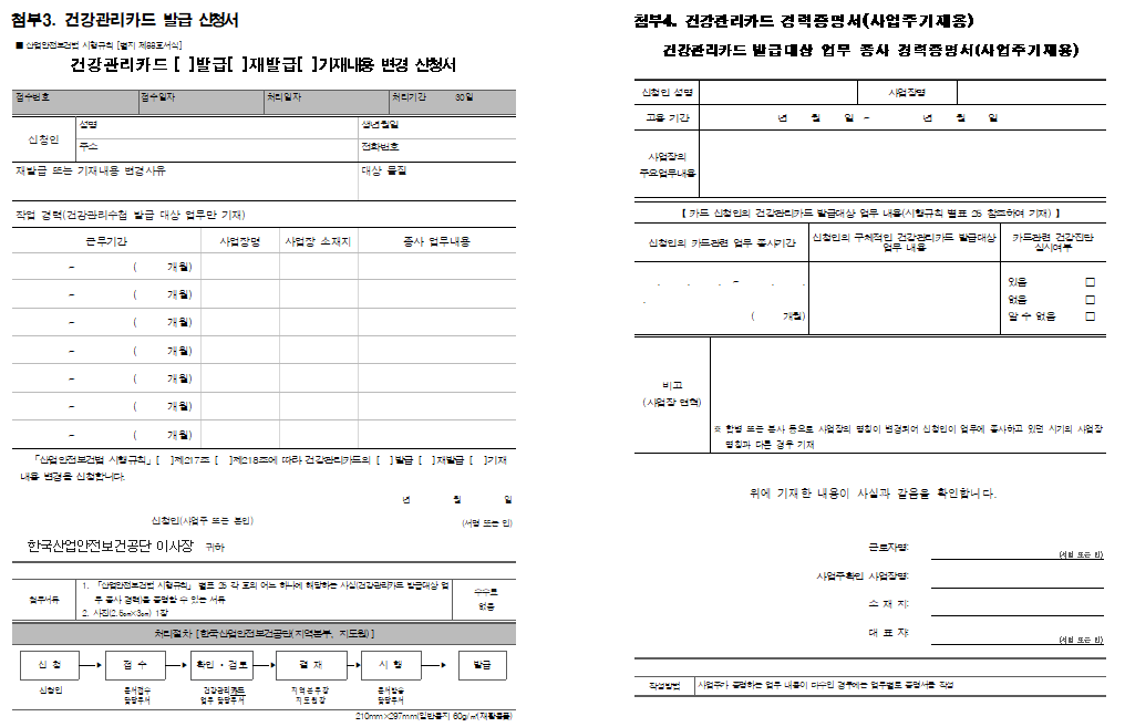 - 건강관리카드 발급 신청서(서식)