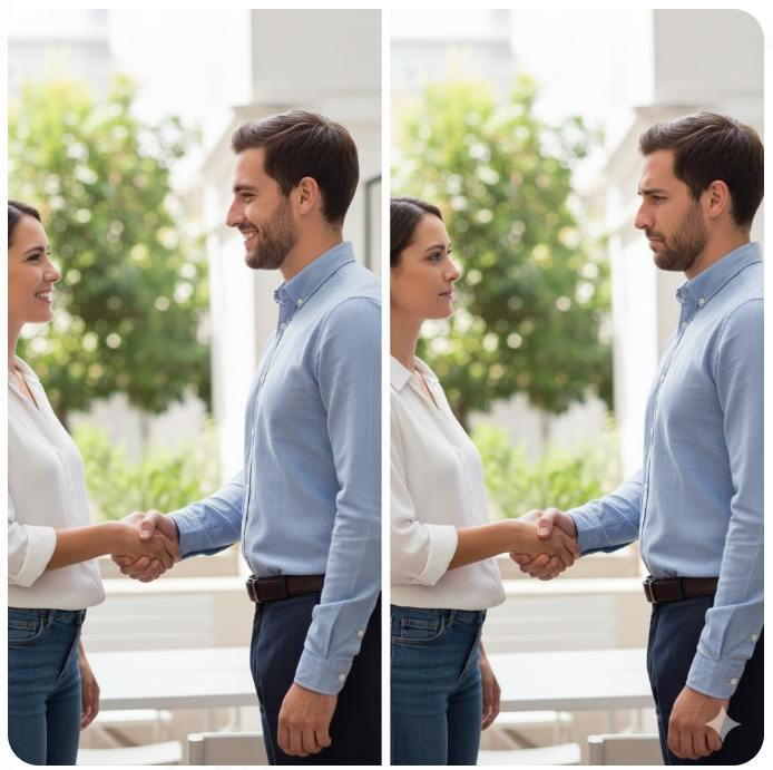 표정 신호를 아주 조금만 얹는 것이다. 입꼬리만 5mm 올라가도 분위기는 확 달라진다.