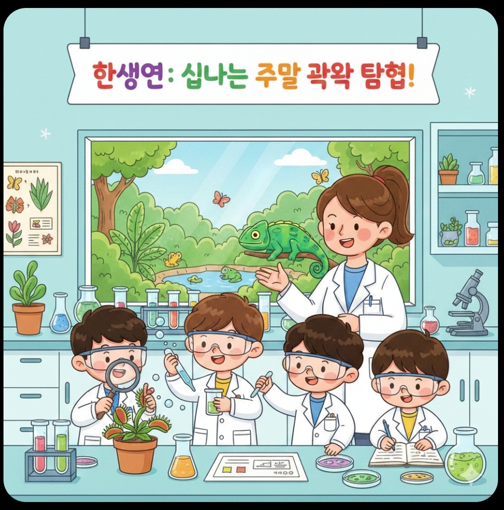 한생연: 실험·체험 과학놀이터100% 실험 위주(생명·물리·화학·융합), 유아감성 과학교실로 놀이+관찰 중심.호기심 자극에 최적, 집에서 못하는 실험으로 과학 사랑 키움.